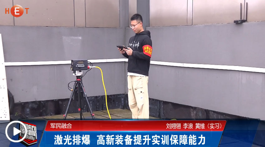 湖南教育電視臺國防教育頻道報道湖南兵器光電科技有限公司的激光排爆、激光銷毀、投彈保障技術,高新裝備提升實訓保障能力